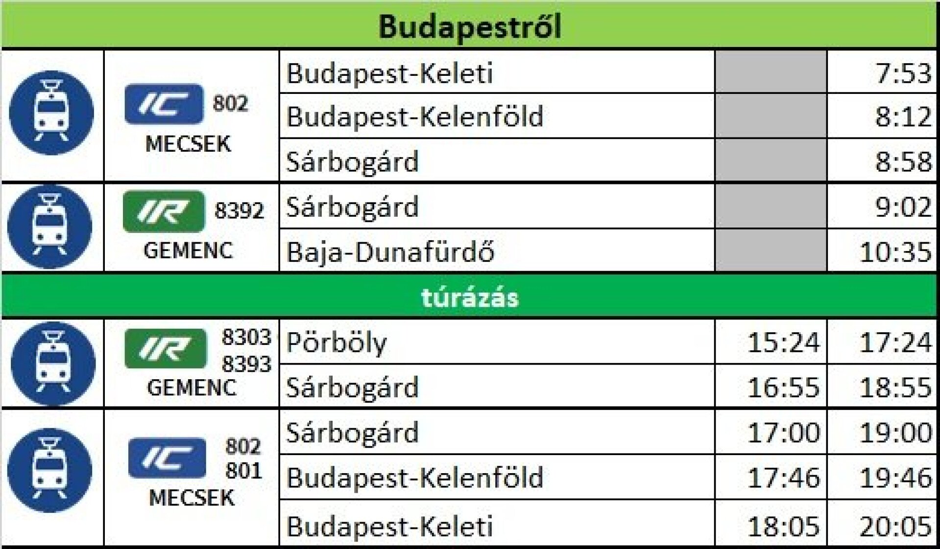 Az eljutáshoz menetrendi ajánlókkal szeretnénk segítséget adni, illetve az üzenőfalon is szívesen válaszolunk az ezzel kapcsolatos kérdésekre.