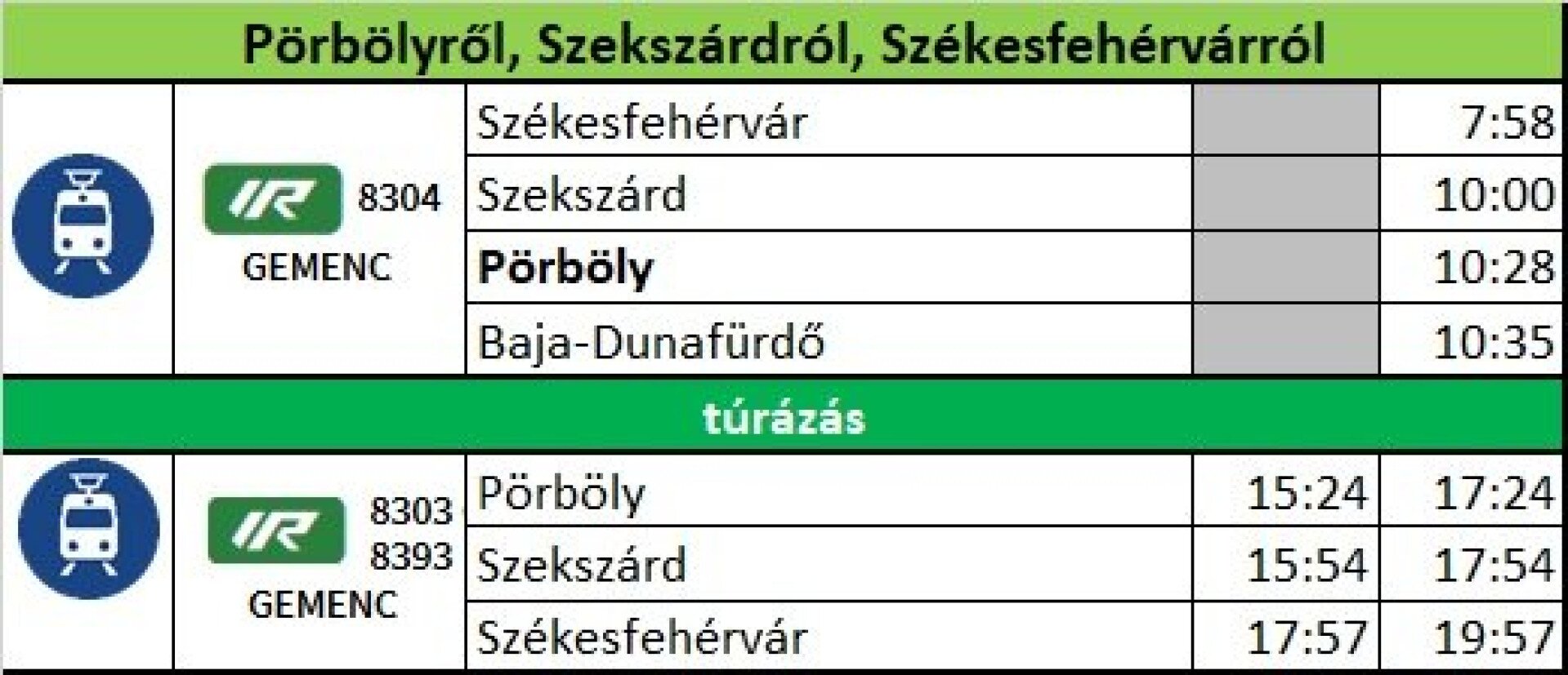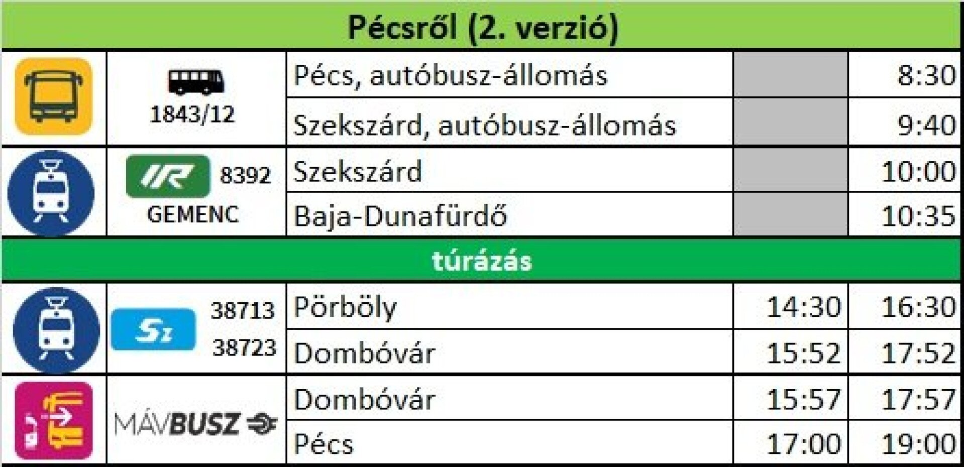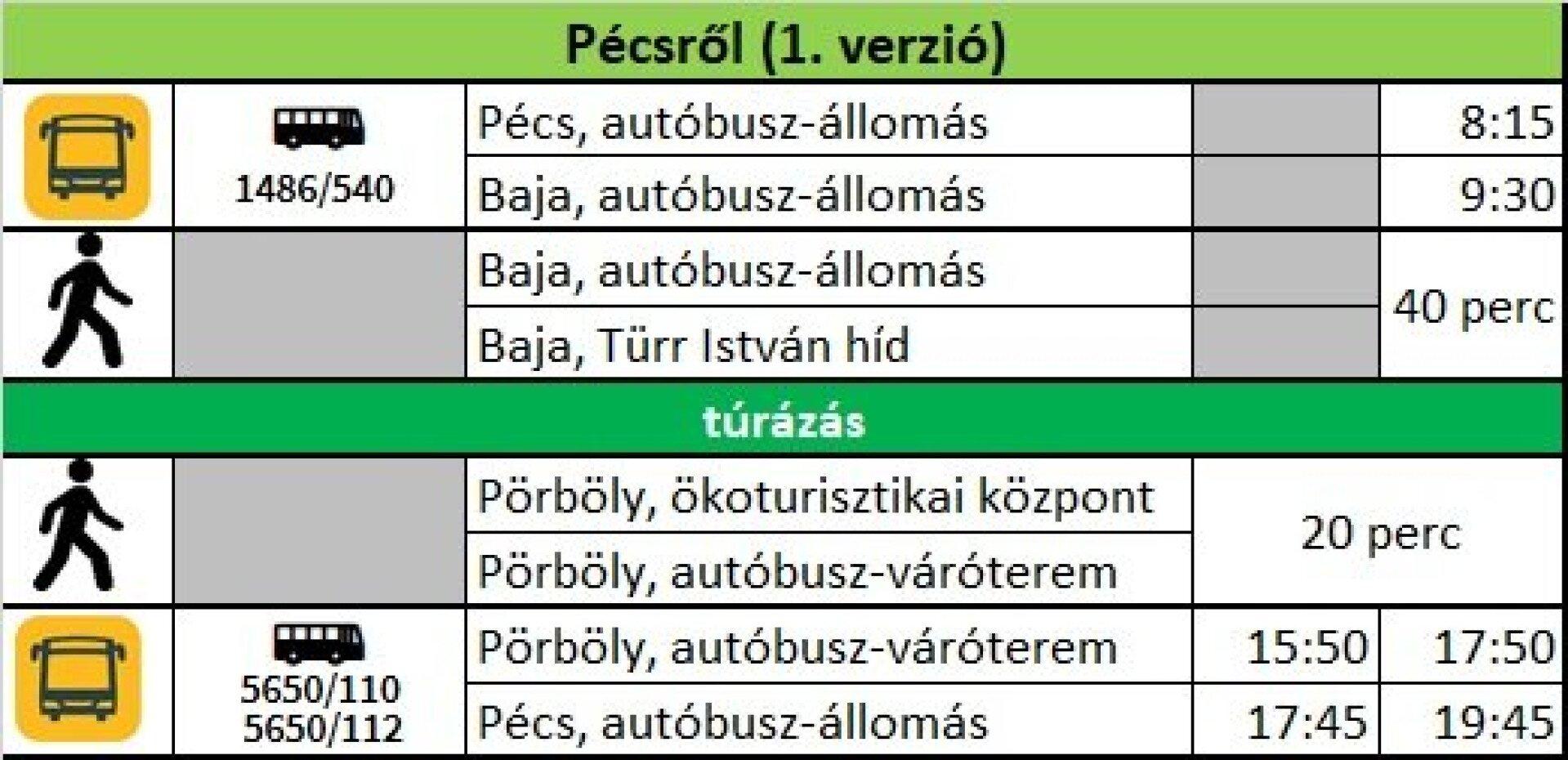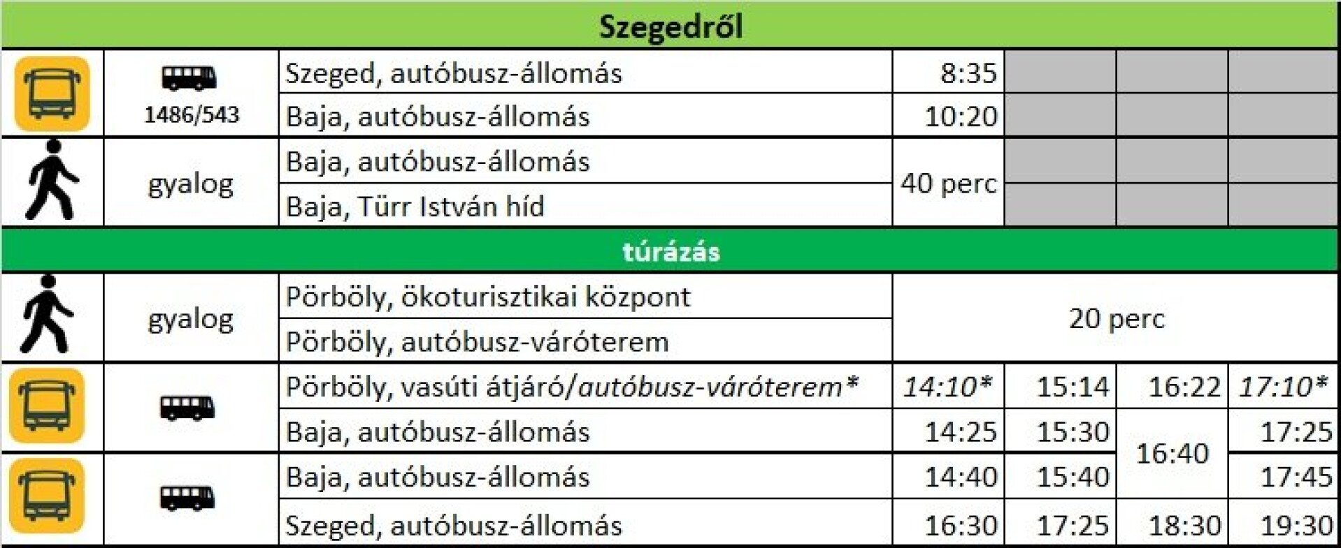 A szakasz bár változatos, de rövid és könnyű, ami lehetővé teszi, hogy több vármegyéből és városból, illetve a fővárosból is kényelmes időben lehessen csatlakozni, akár közösségi közlekedéssel is. Aki mégis személygépkocsival érkezne, annak javasoljuk, hogy hagyja Pörbölyön az ökoturisztikai központál az autóját, és onnan a Bajára 10:28-kor induló Gemenc InterRégióval utazzon el Baja-Dunafürdőig, a vonat aznap ott is meg fog állni.